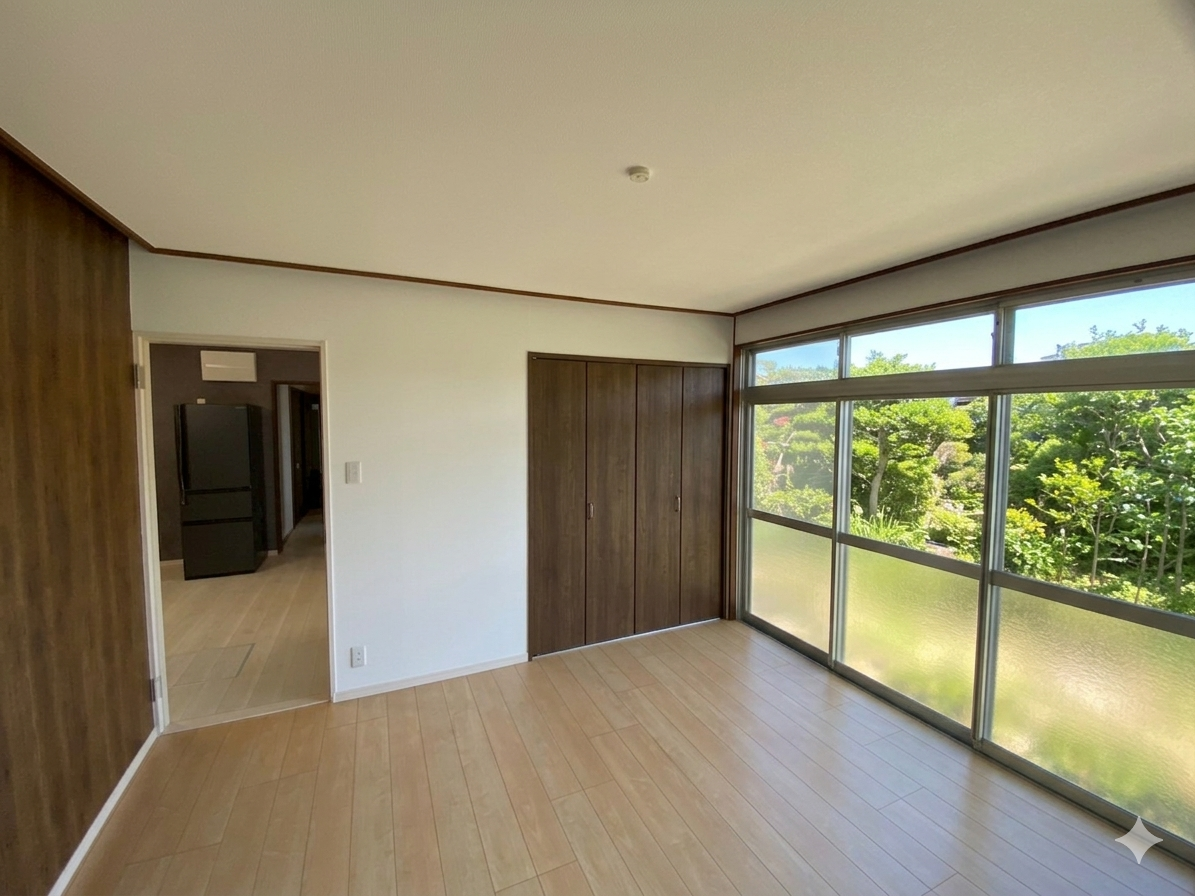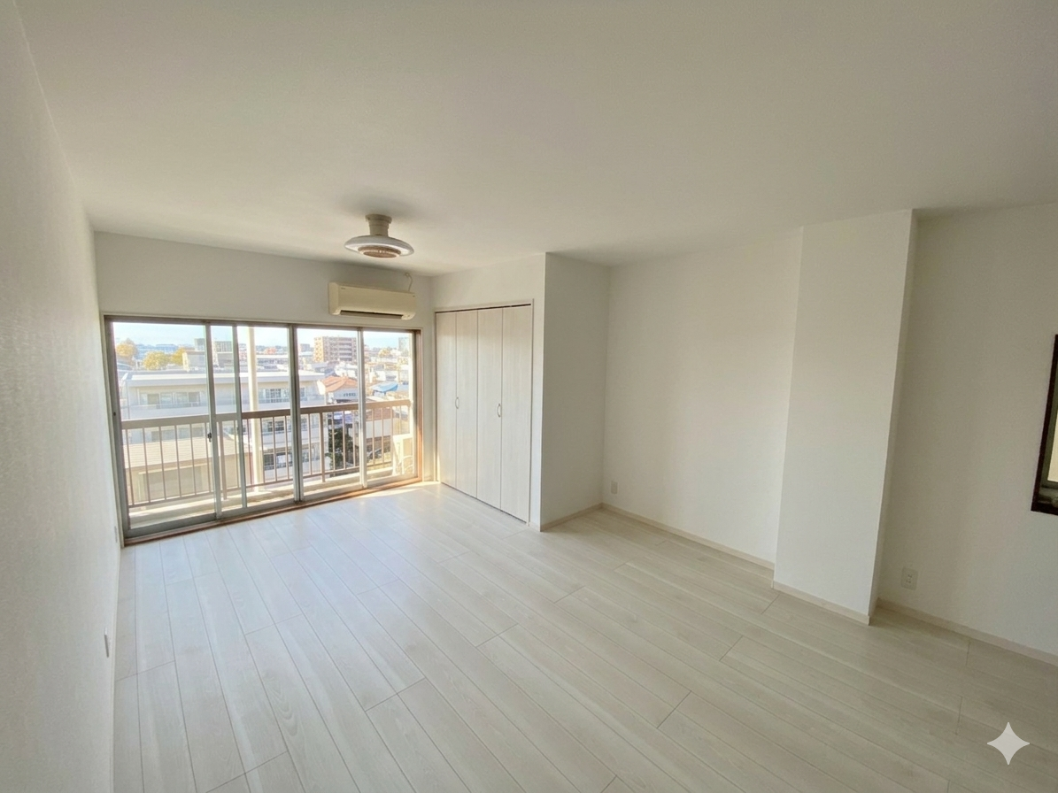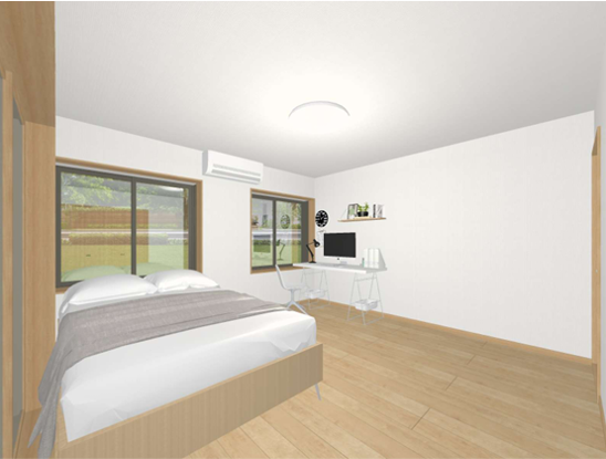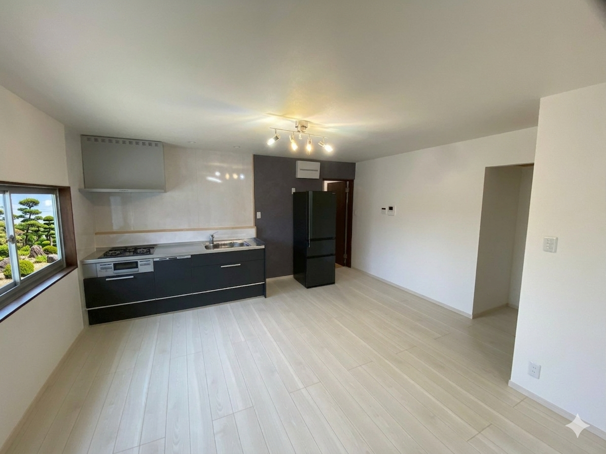 元々独立していた「キッチン」と隣接する「和室(6畳)」をつなげ、広々とした**LDK(リビング・ダイニング・キッチン)**へ、リビング横を主寝室とした。
